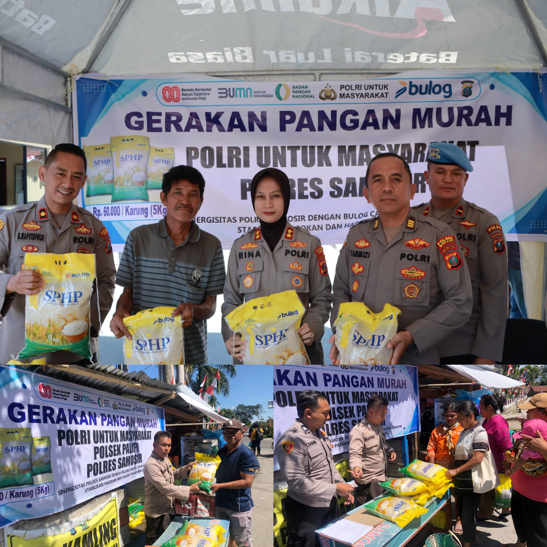 Program ini merupakan hasil sinergi Polres Samosir dengan Bulog Cabang Pematangsiantar dalam rangka stabilisasi pasokan dan harga pangan (SPHP) beras.