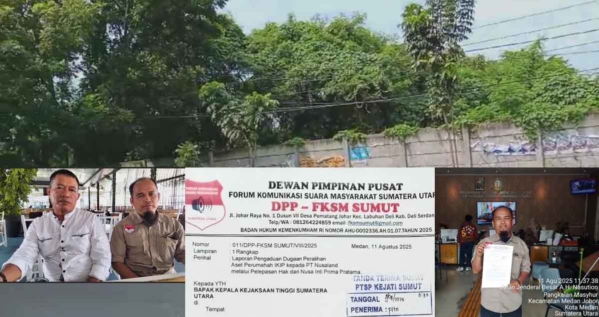 MEDAN – Forum Komunikasi Suara Masyarakat Sumatera Utara (FKSM Sumut) melaporkan dugaan pengalihan aset Perumahan Dosen dan Pegawai IKIP Medan (kini Unimed) seluas 13,5 hektar kepada pihak swasta ke Kejaksaan Tinggi Sumatera Utara (Kejatisu), Senin (11/8/2025). Lahan yang berada di Jalan Kapten Sumarsono/Simpang Gaverta, Medan Helvetia, tersebut disebut memiliki nilai aset sedikitnya Rp 1,3 triliun.