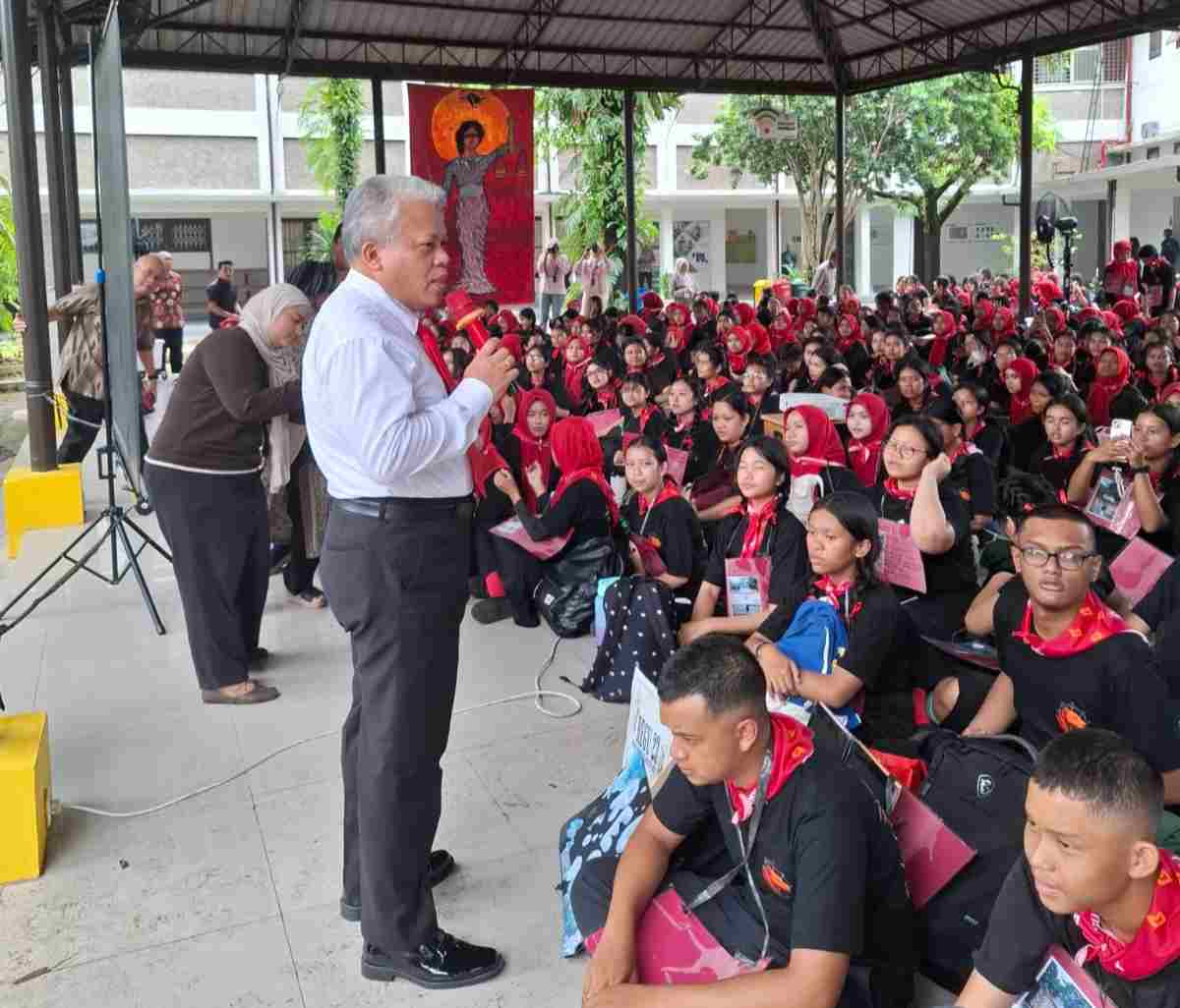 Topik News Medan – Kepala Kejaksaan Tinggi Sumatera Utara, Dr. Harli Siregar, SH, M.Hum memberikan semangat dan motivasi kepada mahasiswa baru Fakultas Hukum Universitas Sumatera Utara dalam acara Pengenalan Kehidupan Kampus Mahasiswa Baru, di Kampus FH USU, Medan, Jumat, 15 Agustus 2025.