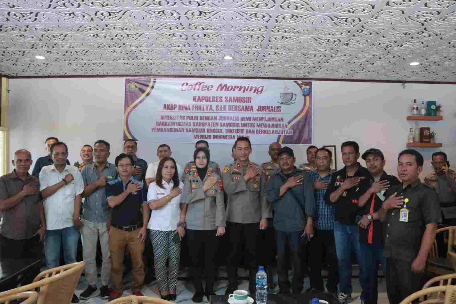 Topik News Samosir – Kapolres Samosir AKBP Rina Frillya, S.I.K menggelar kegiatan Coffee Morning bersama puluhan jurnalis Kabupaten Samosir, Sabtu (23/8/2025) pagi. Pertemuan yang berlangsung di Topi Tao Coffee Shop, Desa Pardomuan I, Kecamatan Pangururan itu mengusung tema “Sinergitas Polri dengan Jurnalis Demi Mewujudkan Harkamtibmas Kabupaten Samosir untuk Mewujudkan Pembangunan yang Unggul, Inklusif, dan Berkelanjutan Menuju Indonesia Maju.”