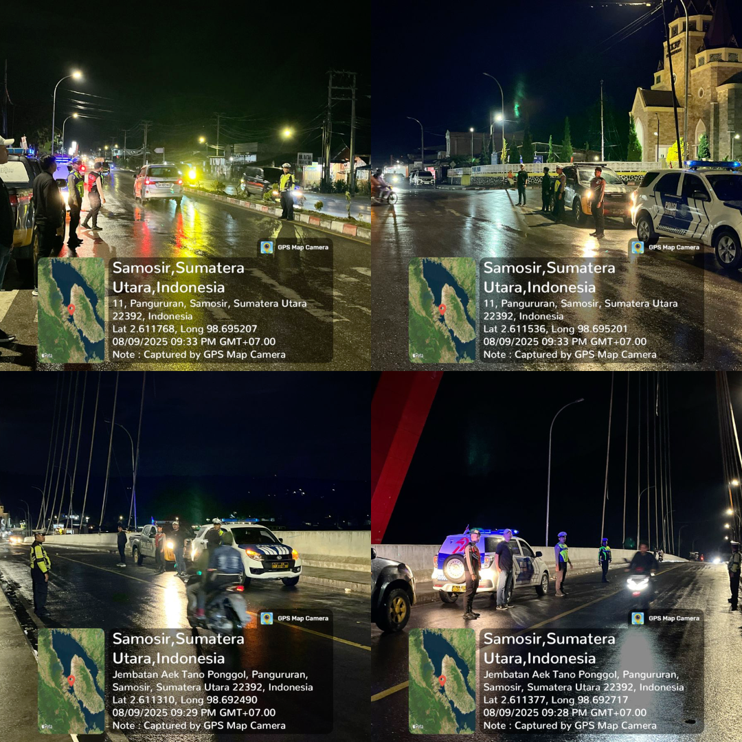Pangururan, Samosir – Dalam rangka memelihara keamanan dan ketertiban masyarakat (Harkamtibmas), Polres Samosir kembali menggelar Patroli Presisi pada Sabtu (9/8/2025) malam hingga Minggu (10/8/2025) dini hari. Kegiatan ini difokuskan di pintu masuk Pulau Samosir jalur darat, yakni di Jembatan Tano Ponggol dan Simpang Empat Jalan Gereja, Pangururan.