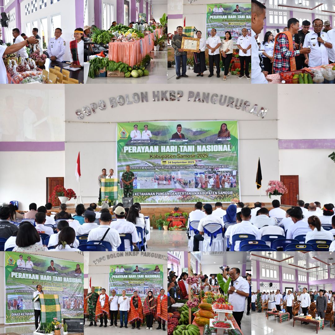 Samosir, 24 September 2025 – Pemerintah Kabupaten (Pemkab) Samosir merayakan Hari Tani Nasional dengan penuh semangat melalui rangkaian acara yang digelar di Sopo Gereja Bolon HKBP Pangururan, Selasa (24/9). Kegiatan ini menghadirkan pameran produk UMKM dari Petani Milenial, Masyarakat Perlindungan Indikasi Geografis (IG) Andaliman Pulo Samosir, Stand Pangula Nature, hingga berbagai produk unggulan UMKM lokal lainnya.